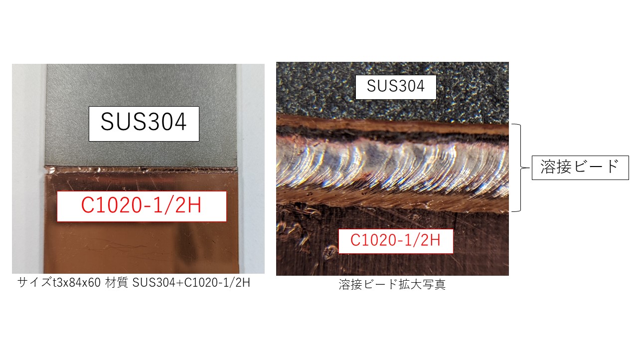 この度、EBW(電子ビーム溶接)による純銅(C1020-1/2H)とステンレス鋼(SUS304)の異材溶接にトライしました。純銅とステンレス鋼は融点や熱伝導率が異なるため溶接に苦慮致しましたが、何度もチャレンジし、溶接条件を確立することが出来ました。