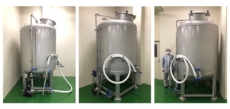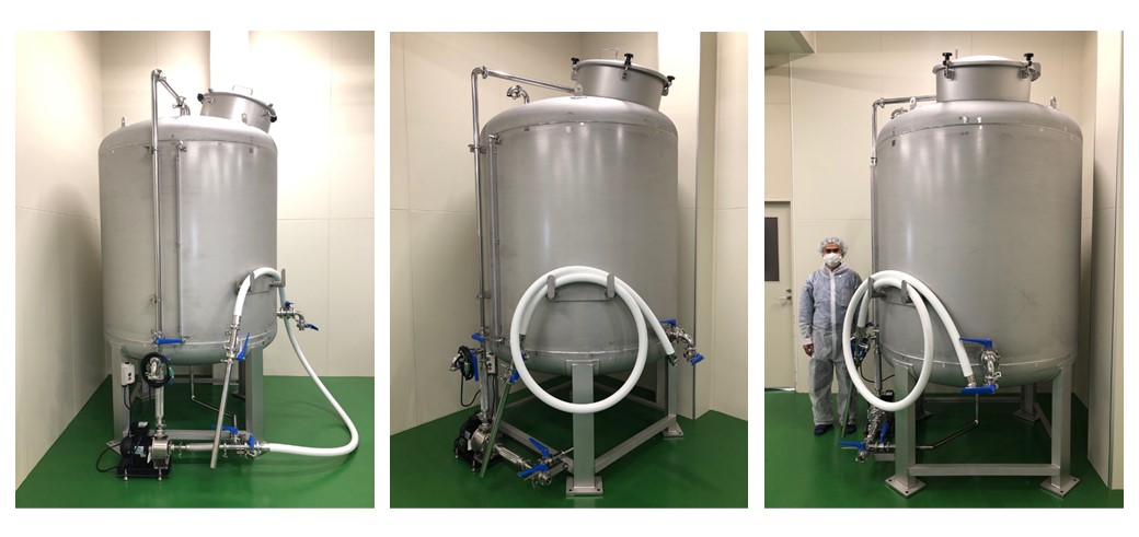 タンク内の流体は常に循環させる構造となっており、内面は全面電解研磨仕様、その他の配管方法も含め様々な工夫が施されております。