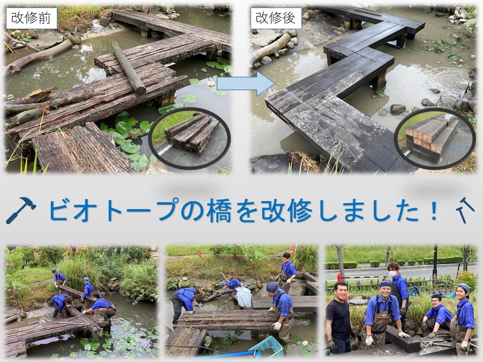 2007年に当地へ移転以来、ビオトープに多くの方々を迎え入れてくれた橋ですが、