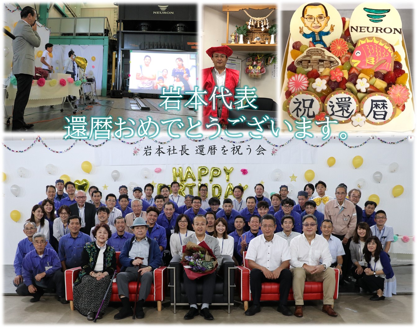 60年間の人生を振り返るムービー、社員とその家族からのお祝いのメッセージや