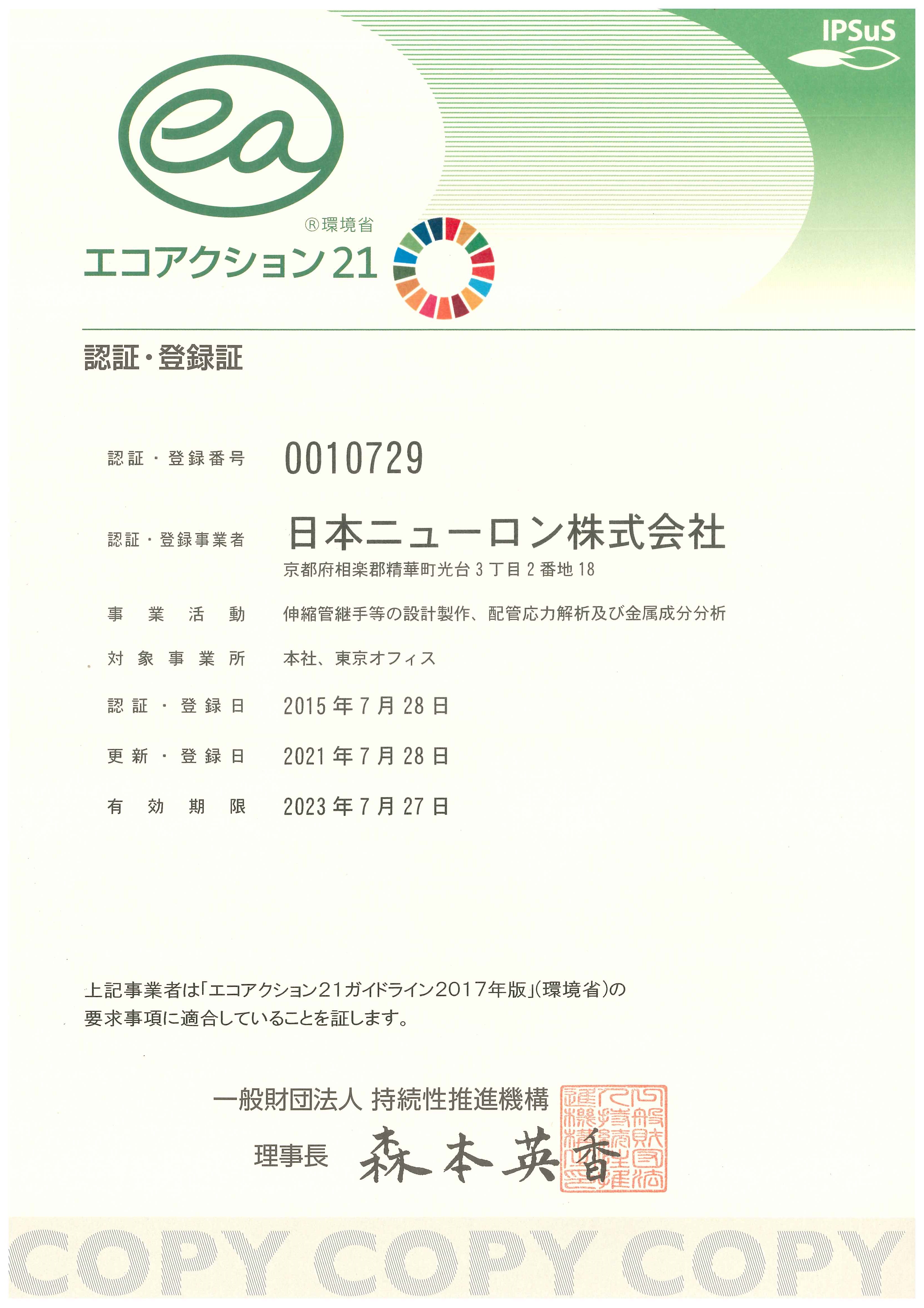 当社は環境省が策定した日本独自の環境マネジメントシステム「エコアクション21」の認証を2014年に取得しました。