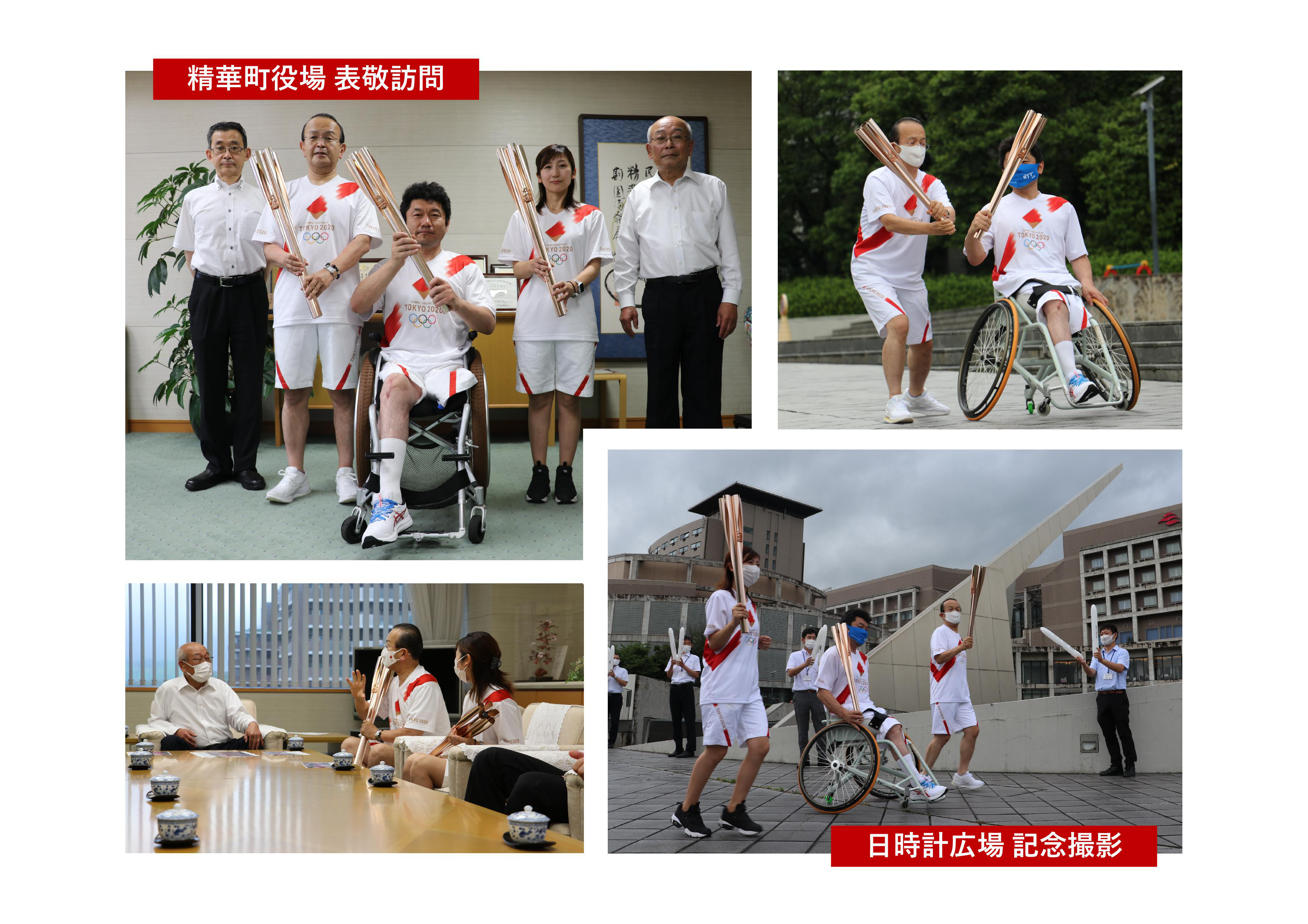 6月末にはコロナ禍における緊急事態宣言も解除され、精華町にゆかりの深い聖火ランナー3名が集まり精華町役場を訪問、ランナーユニフォームに身を包み、トーチを手に、精華町の町長、教育長に聖火リレーへの参加を報告しました。