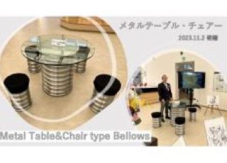 開所にあわせましては当社からベローズ成形加工を活用した「メタルテーブル・チェアーセット」を寄贈いたしました。
