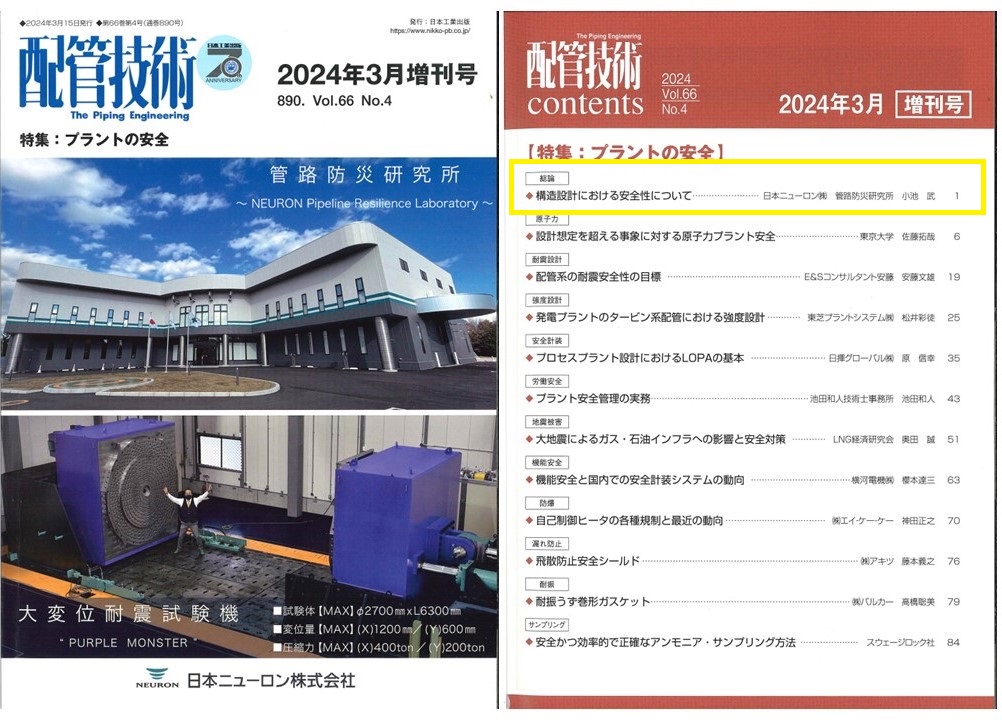 日本工業出版㈱発行の専門技術誌「配管技術」2024年3月増刊号に掲載されました。