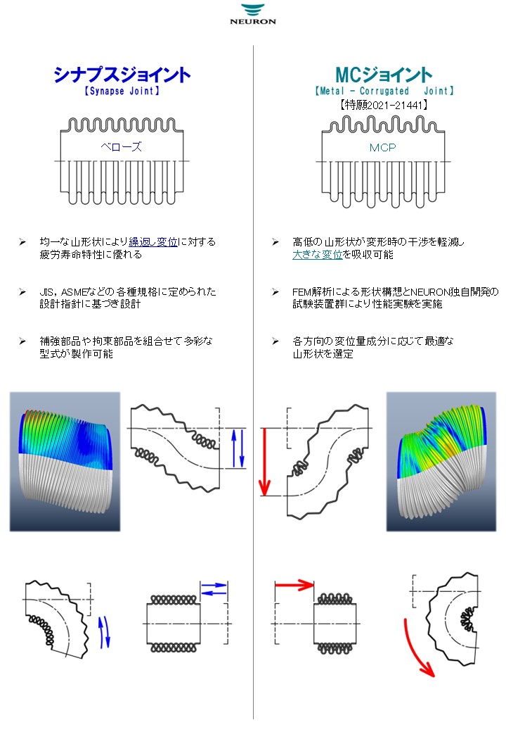 『MCジョイント』は特殊形状ベローズを使用することで「極短面間」での製品化を実現しました。