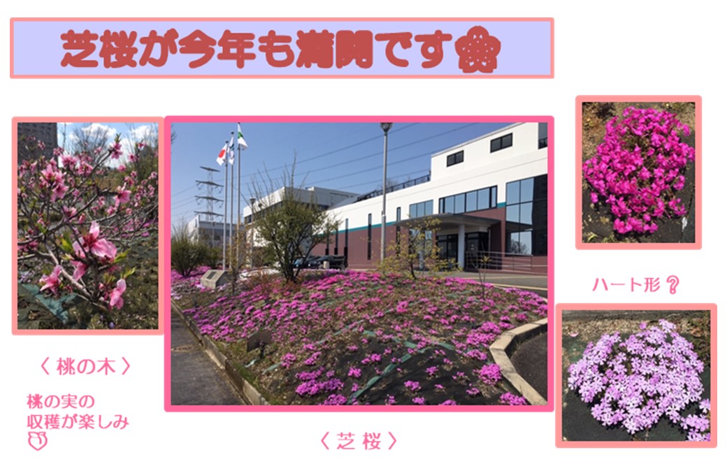 NEURON正面玄関に広がるピンクのカーペット「芝桜」が今年も満開です