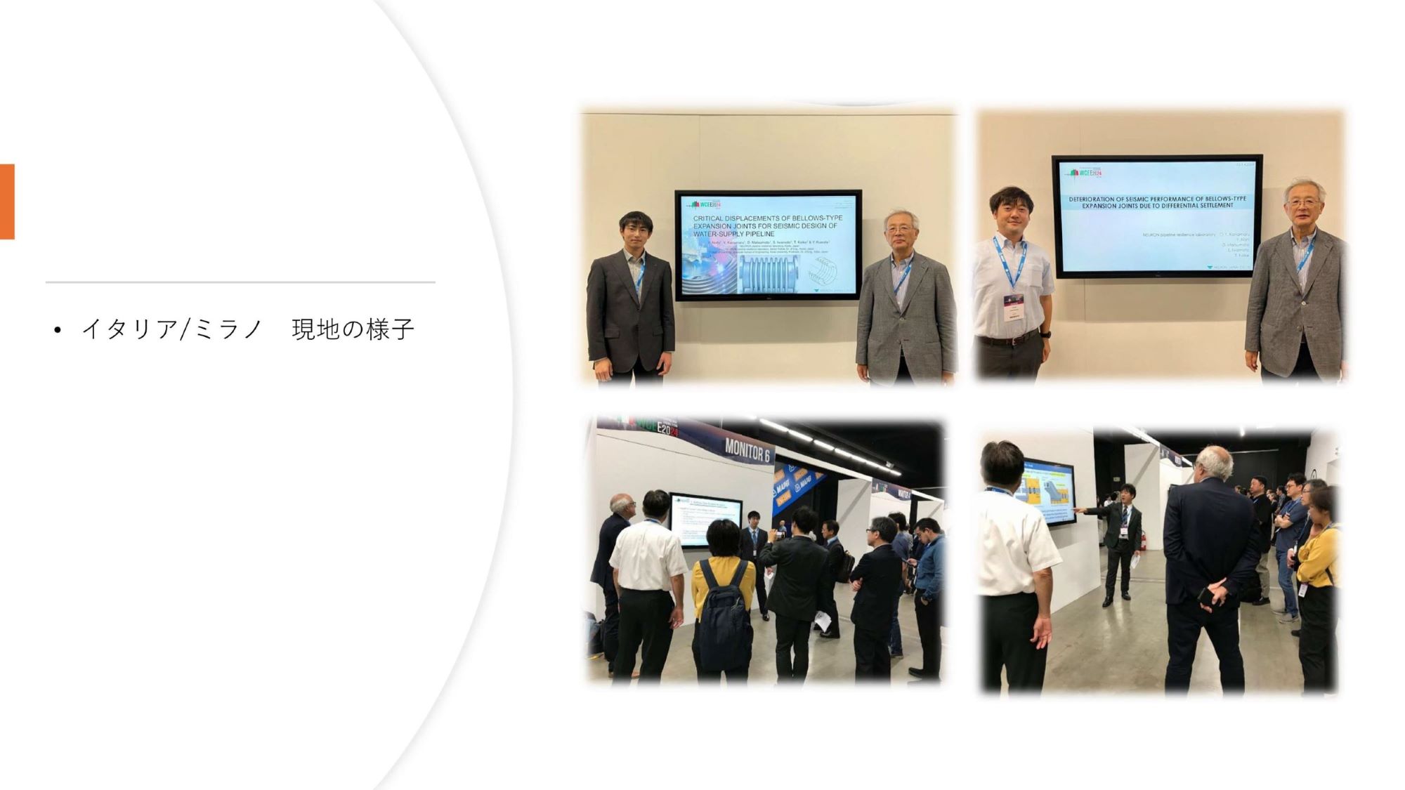 水道管路における伸縮可撓継手を対象としてベローズの耐震性能について各国の研究者と議論を深めました。