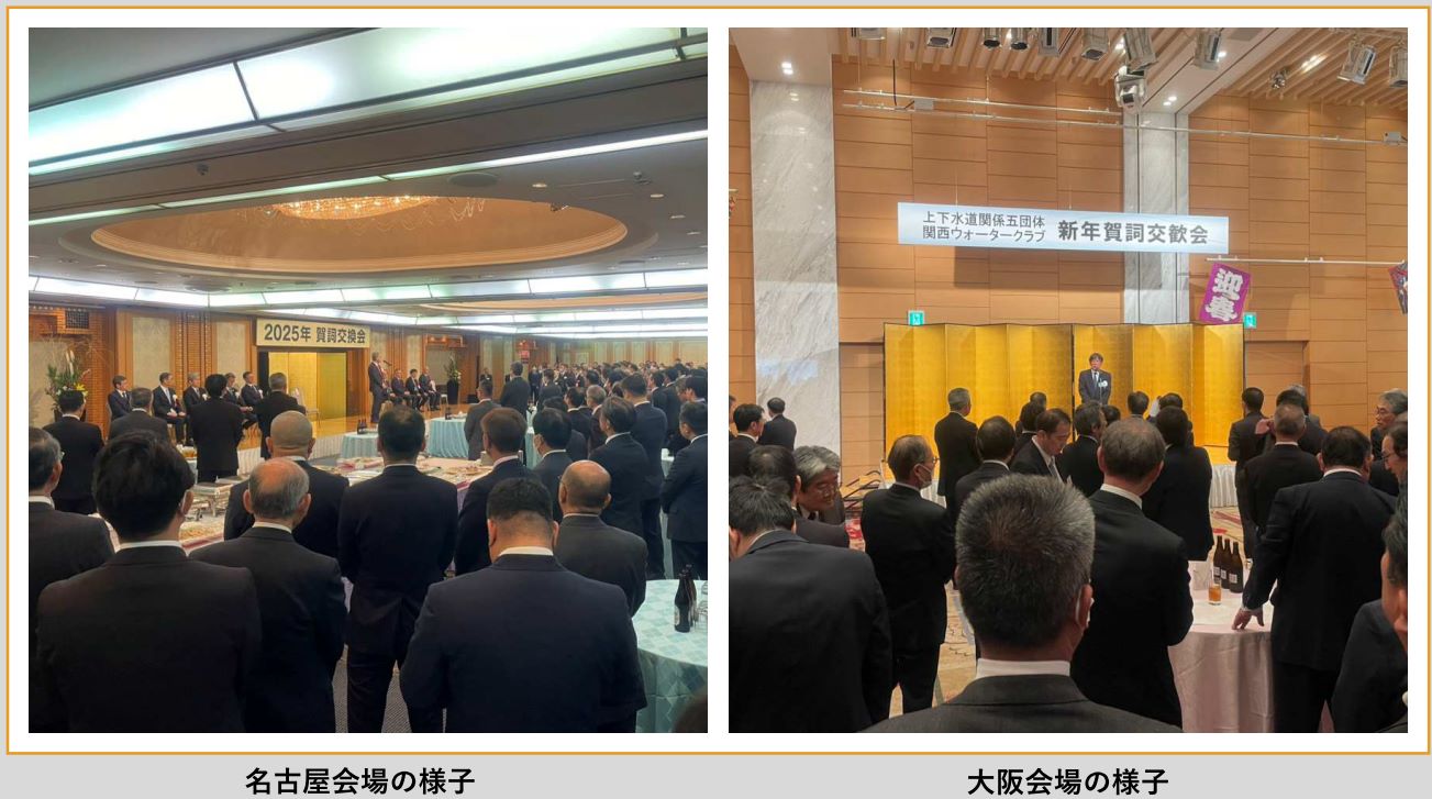 今年も賀詞交歓会が1月7日(火)東京会場、1月9日(木)名古屋会場・大阪会場にて開催され、NEURONも3会場へ出席し新年のご挨拶をいたしました。 この会は、水道関連5団体が年始に行う交歓会で毎年多数の水道関係者が出席され、今年は前年度を超える来場者数となり、さらなる結束を誓う場となりました。 当社は水道事業の本格参入し約10年が経過しました。 水道業界の更なる発展と国土強靭化の為、より一層力を入れて貢献したいと考えております。